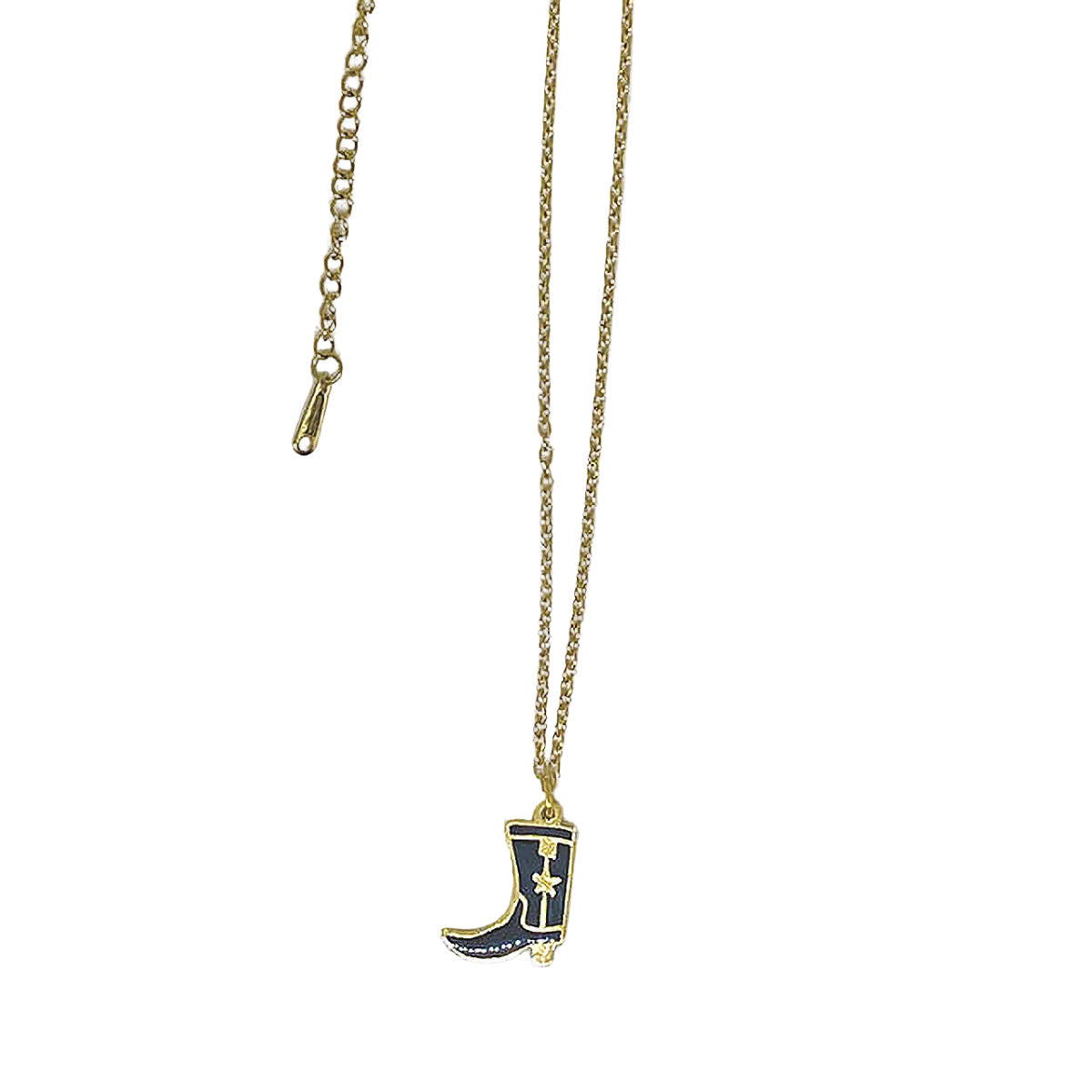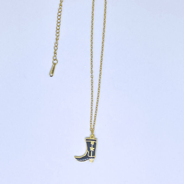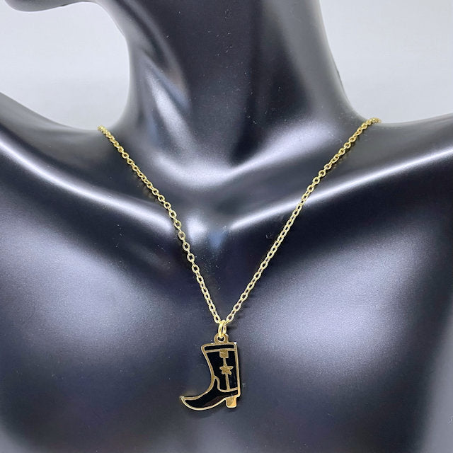 18K gold stainless steel Epoxy 3/4" black boot charm on stainless steel chain