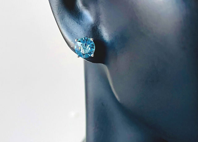 Add a pop of color to your ensemble with our Sterling Silver Rhodium-Plated Post Earrings, boasting a vibrant round aqua blue CZ stone.