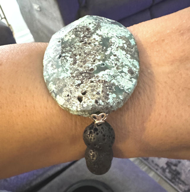 Black Lava Stretch Bracelet featuring an African Turquoise Stone