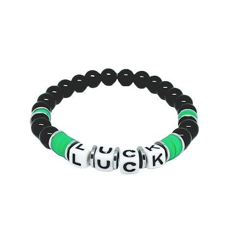 This bracelet blends the protective qualities of Black Onyx with the symbolism of 'LUCK' to inspire confidence and positive energy. The green Heishi and silver Hematite accents add a chic and eye-catching dimension to your daily attire
