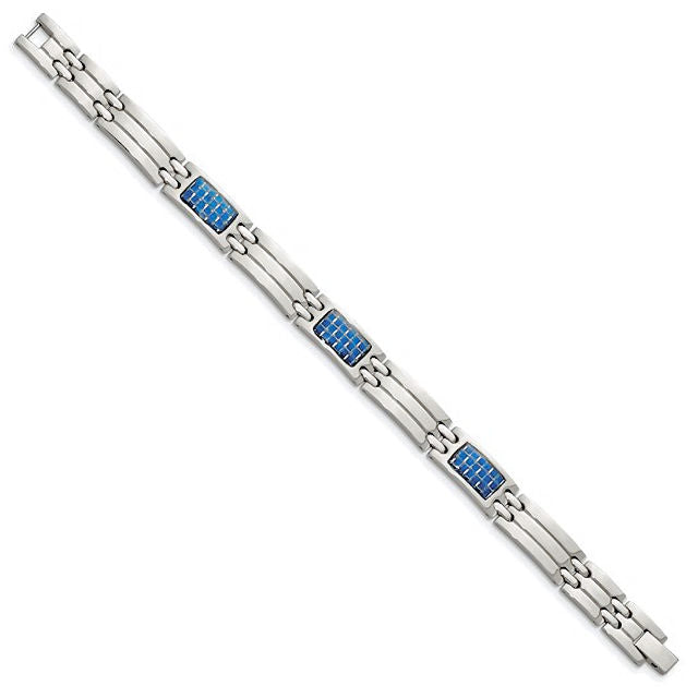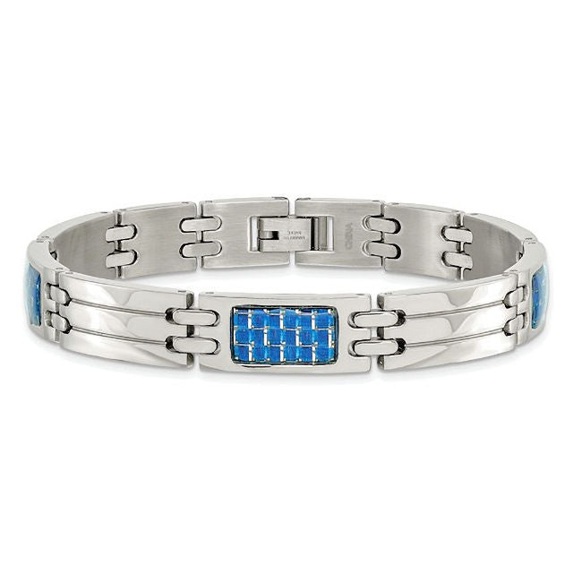 Blue Carbon Fiber Inlay Stainless Steel Bracelet