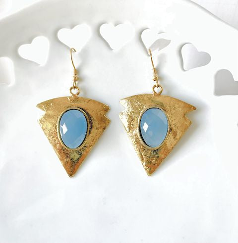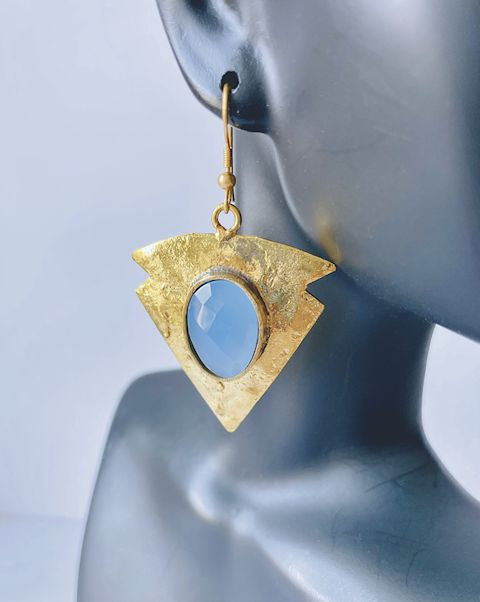 Brass Geometric Shape Earrings with Faceted Chalcedony Stone
