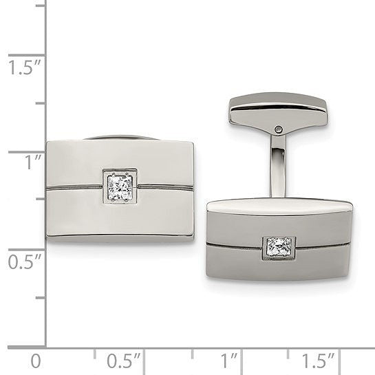 Elevate your formal look with these cufflinks, featuring a classic rectangle design crafted from polished stainless steel and adorned with sparkling CZ (cubic zirconia) stones for a touch of timeless sophistication.