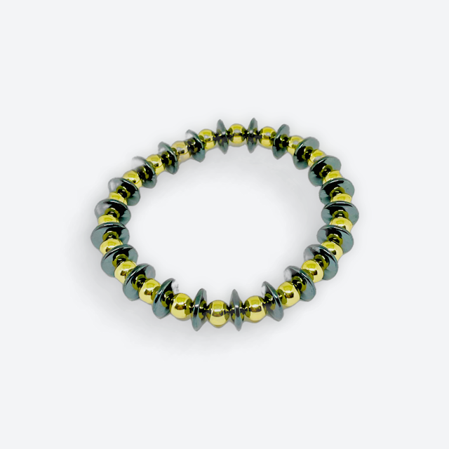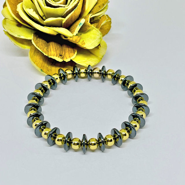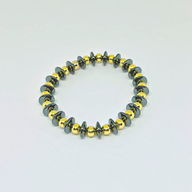 Dark Gray Rondelle Hematite Stretch Bracelet with Gold Hematite Beads