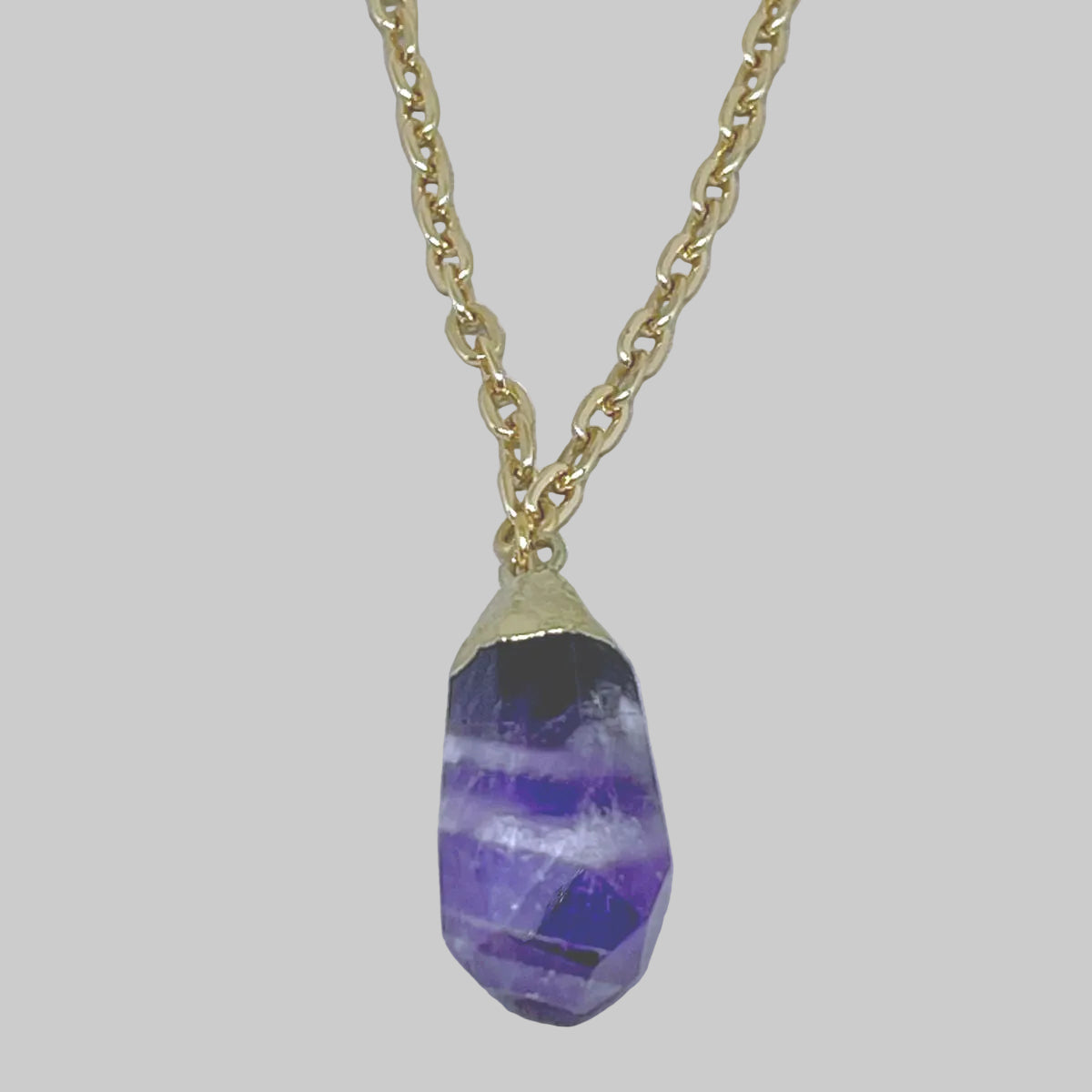 Embrace tranquility and inner strength with this gold-plated necklace, highlighted by a unique and naturally powerful amethyst nugget.