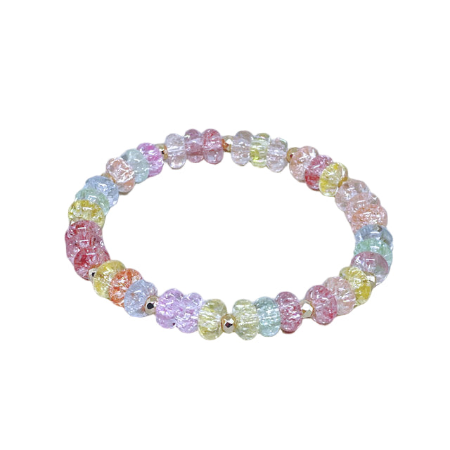 Elevate your style with our Multicolor Cracked Crystal Stretch Bracelet. Stunning cracked crystals in vibrant hues are perfectly complemented by elegant faceted gold hematite spacers. The comfortable stretch design ensures a perfect fit.