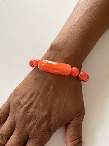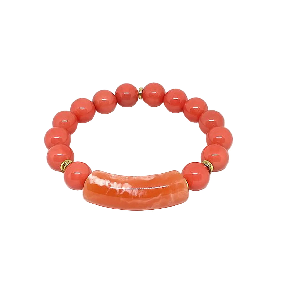 Orange Coral Stretch Bracelet with Acrylic Tube Spacer