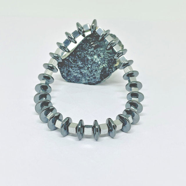 Discover the perfect blend of style and comfort with this Rondelle Hematite Stretch Bracelet, featuring striking silver square hematite spacers that enhance any outfit.