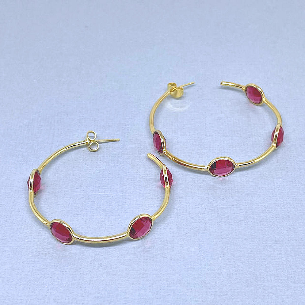 Ruby Quartz Half Hoop Earrings with 18 Gold Plated Metal