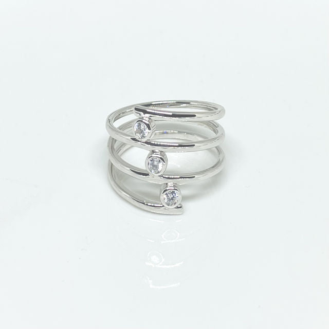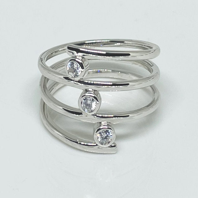 Make a stunning statement with this sterling silver spiral ring, beautifully accented by three cubic zirconia stones.
