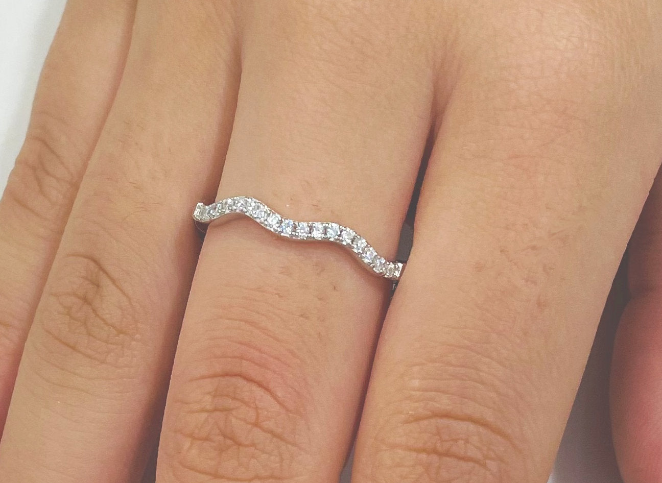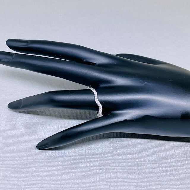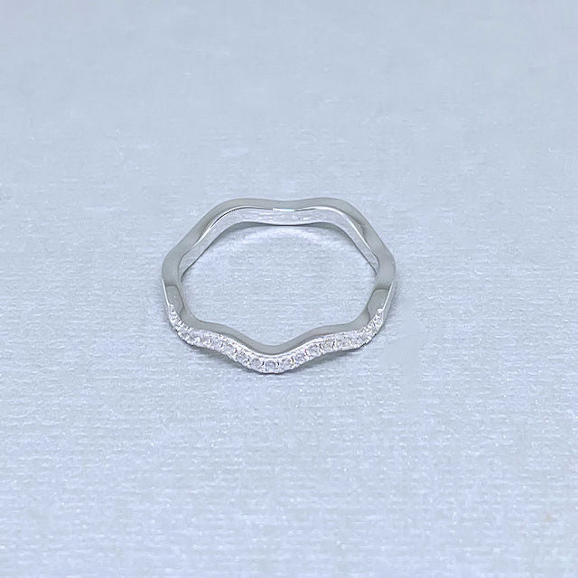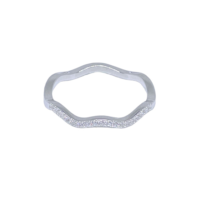This stackable wavy sterling silver ring features 17 clear cubic zirconia stones that add a gentle sparkle to your everyday style. Its comfortable design makes it easy to wear alone or layered with your favorite rings.