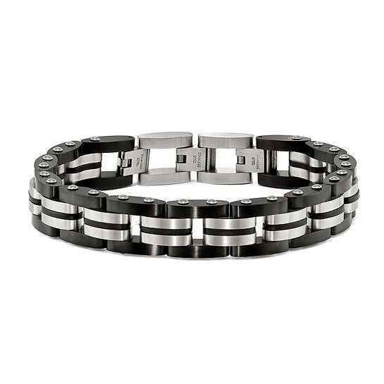 Stainless Steel Bracelet with Black Rubber Inlay