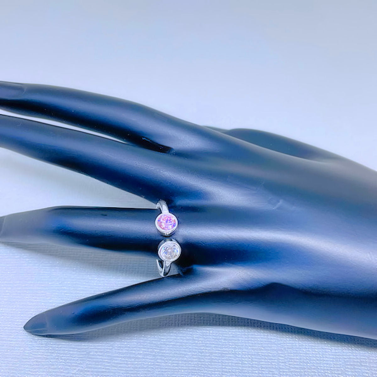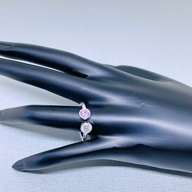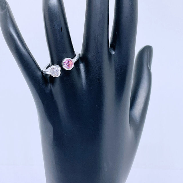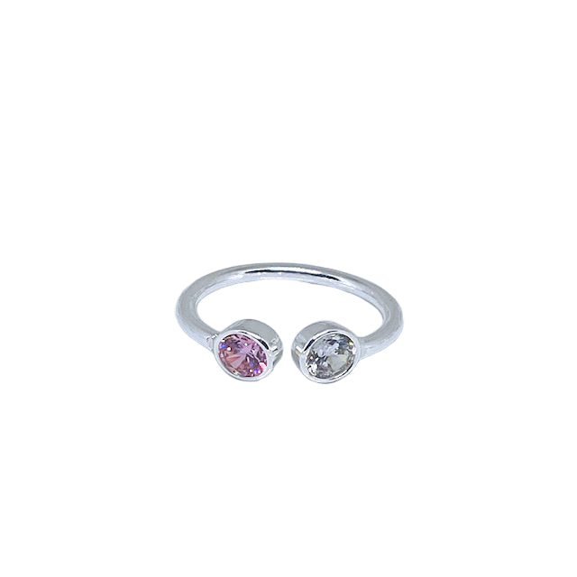 Sterling Silver Adjustable Pink and White CZ Ring