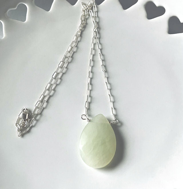 18 1/2" Sterling Silver Paper Clip necklace featuring a stunning Teardrop Seafoam Green Chalcedony pendant.