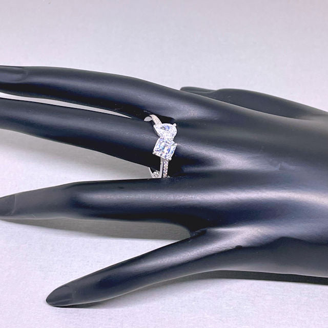 Add some sparkle to your hand with our Sterling Silver Pear and Square CZ Ring! Its vibrant Pear and Square CZ's catch the light for a dazzling effect. Made with high-quality Sterling Silver.